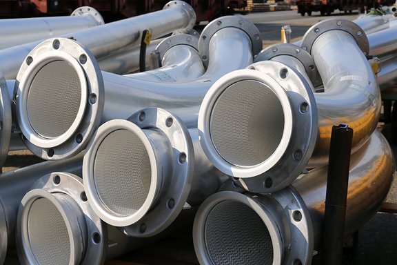 Unsere Rohrsysteme bestehen je nach Ihren Anforderungen aus Edelstahl, Aluminium oder Duplex-Stahl. Während Edelstahl durch Korrosionsbeständigkeit überzeugt, bietet Aluminium eine gewichtsoptimierte Alternative für bestimmte Fördermedien. Für hochabrasive Anwendungen kommt unser bewährter Duplex-Stahl 1.4462 (UNS S32205) zum Einsatz – widerstandsfähig gegen mechanischen Verschleiß und Korrosion zugleich.