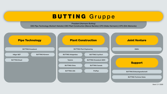 Seit fast 250 Jahren steht der Name BUTTING für Innovationskraft und Spitzenleistung. Unter dem Leitmotiv „Fortschritt aus Tradition“ ist seither mit der BUTTING Gruppe ein der Zukunft zugewandtes Weltunternehmen entstanden.